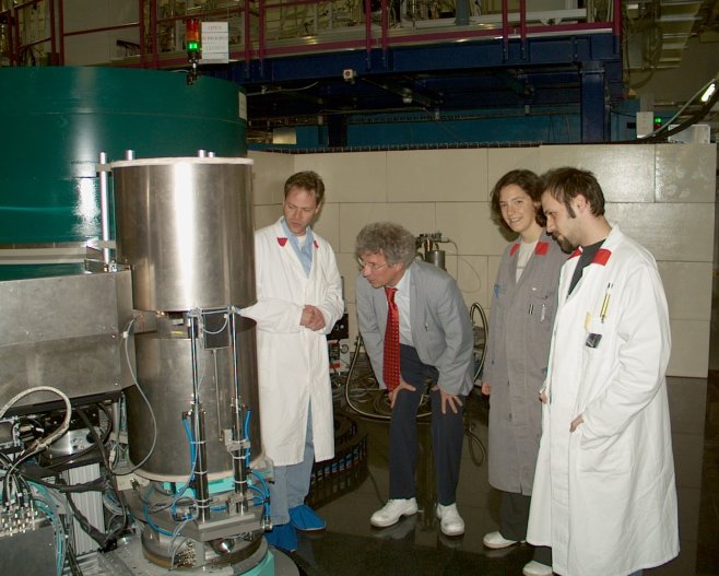 Klaus Habicht examined at that time 10 years ago the phonon life time in superconducting niobium and later also in lead. Thomas Keller was already in charge of investigations at TRISP and recalls: “For this experiment, we have adjusted a very long time, but on May 4, the time had come. From these first results even two publications have emerged, in Phys. Rev. Lett. and in Science Klaus Habicht’s experiment is followed by some 10 000 more of external users since May 4, 2005, which are for traveling from all over the world to the FRM II.