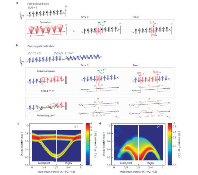 Scientists using inelastic neutron scattering at the ILL have for the very first time given a complete description of a one-dimensional spin-1/2 Heisenberg antiferromagnet as realized in nature in copper sulphate – incidentally, an everyday compound used in school science experiments as well as in herbicides and algae control in swimming pools… Their results, published in Nature Physics, provide a fully quantitative validation of the spin half chain Heisenberg model for a quantum spin liquid.