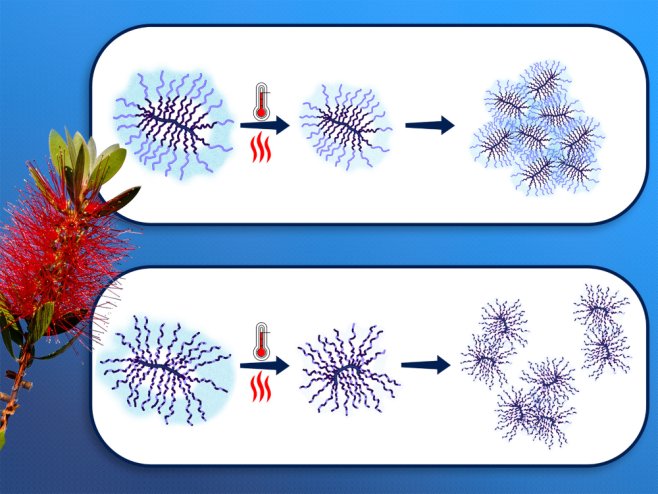 Together with her team in the Soft Matter Physics Group at the Technical University of Munich, she has now been able to visualize for the first time the changes that bottle-brush polymers with arms made of two different types of building blocks undergo when the temperature reaches the cloud point.